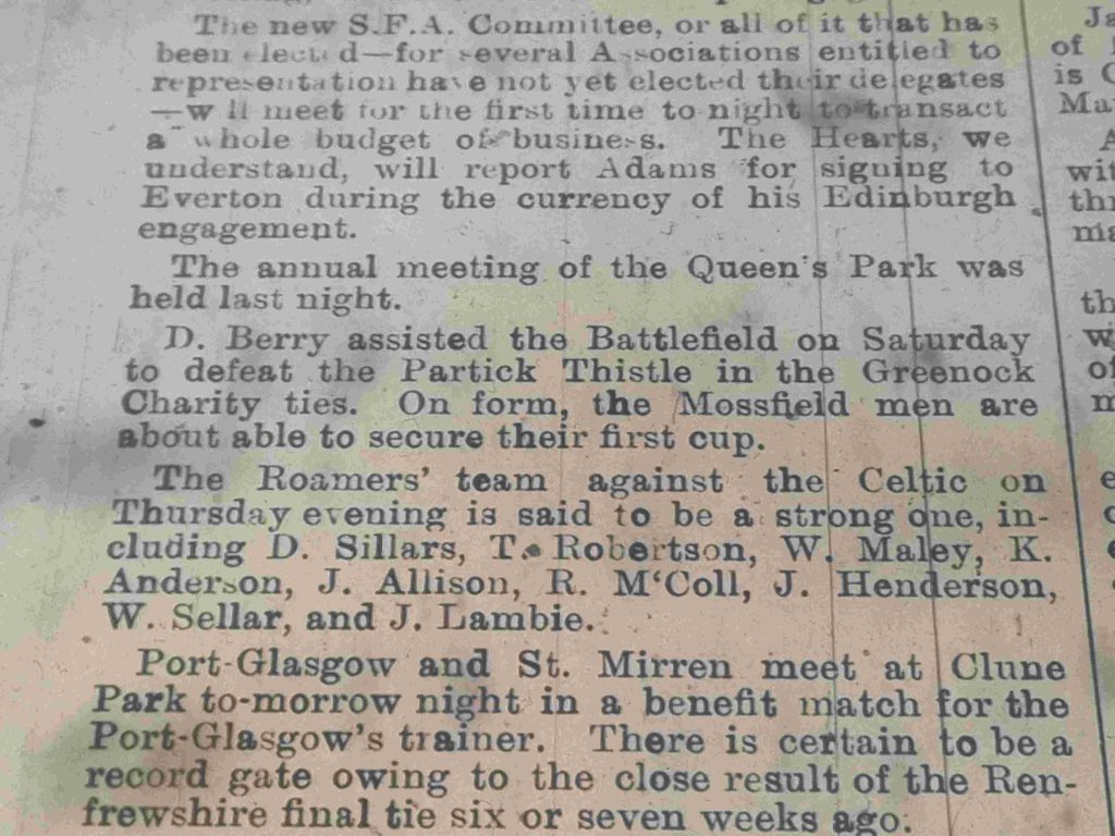 1894-05-31: Celtic 2-3 Roamers, Friendly